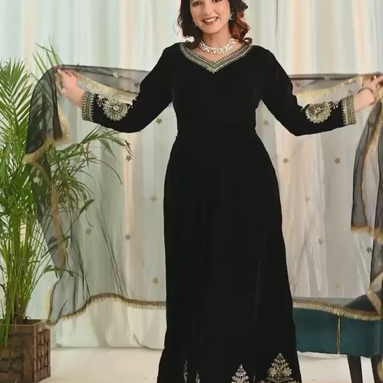 - Fabric – pure heavy viscous velvet with heavy Embroidery multi sequence Work.