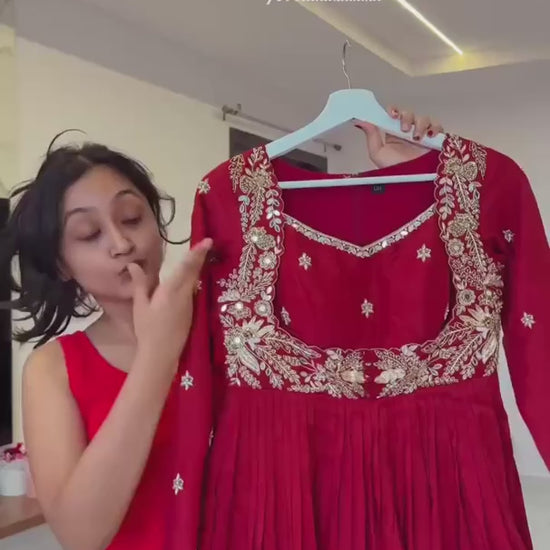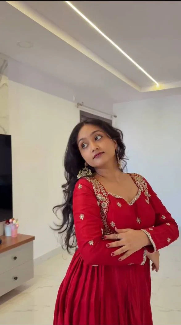 Arshaya Red Opaline Anarkali Suit Set