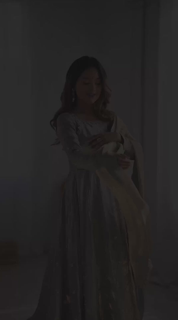 Priyanka Gray Fandy Silk Anarkali Suit Set
