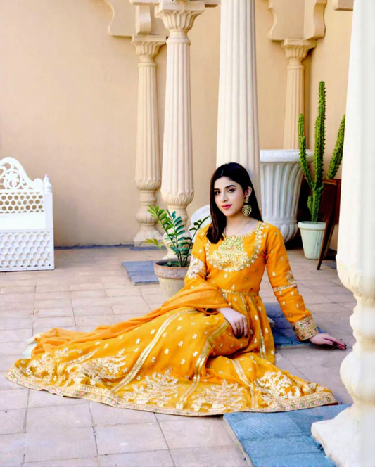 Amber Glow Yellow Georgette Anarkali Suit Set