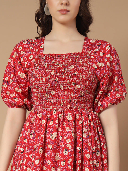 Floral Reddish Long Dress
