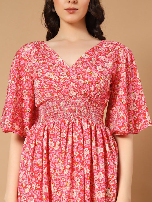 Bright Pink Dress in Fresh Flower Print