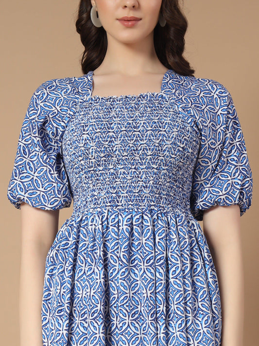 Brushstroke A-line Dress Square Neck With Smocked Style