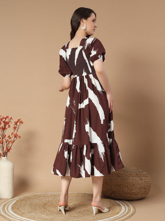 Brown Dress in Bold Tiger Print
