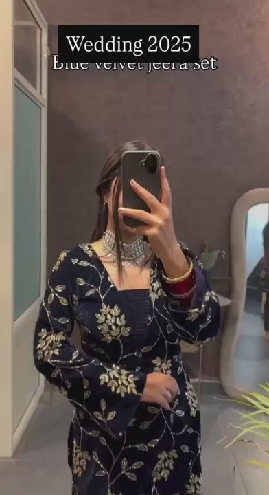 Mehrin Blue Heavy Viscose Velvet Suit Set