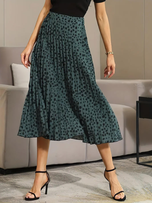 Vintage-inspired Pleated Midi Skirts with Brushstroke Print and Elastic Waistband